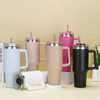 40 أونصة كوب فراغ & من القش بغطاء مزدوج شعار مخصص للبيع بالجملة