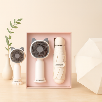 Ventilador de mano compacto con logotipo personalizado y juego de regalo de paraguas plegable accesorio de negocios portátil con diseño elegante