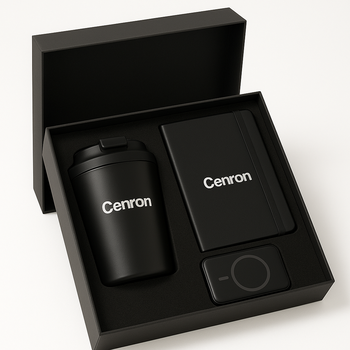 Colección de regalos de negocios con termo, planificador A5, bolígrafo, USB y mini altavoz | Logotipo personalizable, elegante inserción de EVA