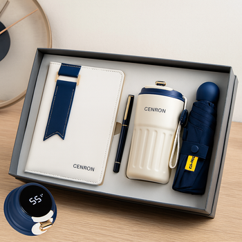 定制标志商务礼品套装,带绝缘不倒翁笔记本笔伞,用于毕业,包括企业礼品盒